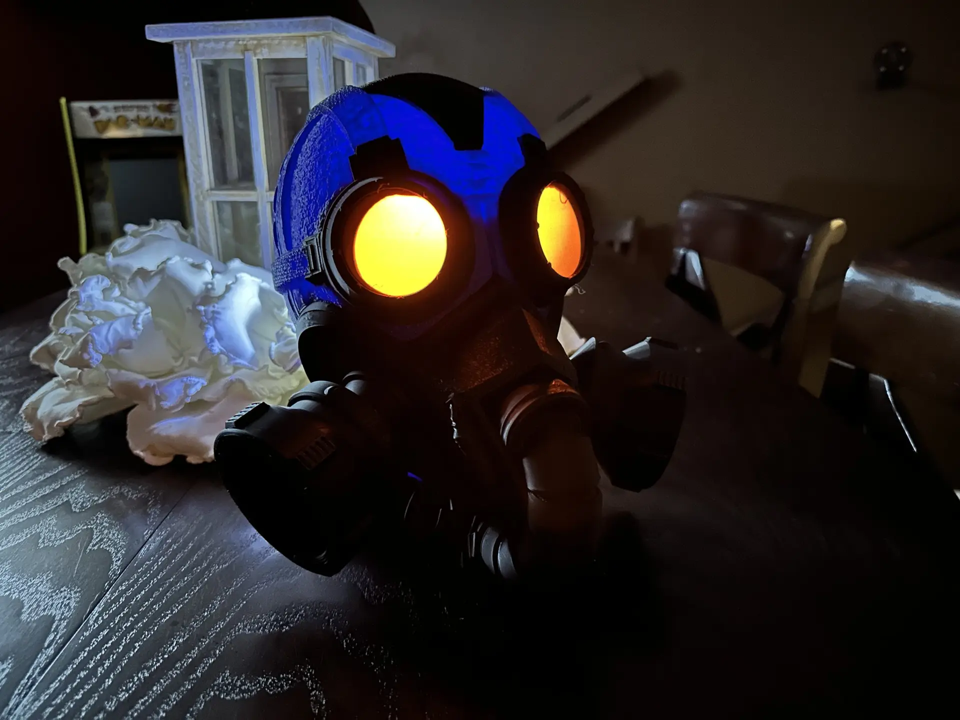 Looking for the coolest headphone holder ever? Want to be the envy of your friends and the gaming community. Look no further. But wait, there’s more! This one-of-a-kind headphone holder is powered by 4 AA batteries that give the eyes an ominous glow as well as projecting a bio-hazard symbol on your wall. What could be better than that?!